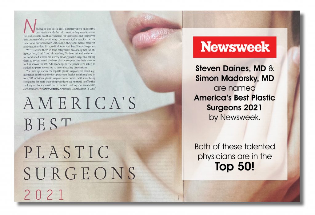 Dr. Steven Daines and Dr. Simon Madorsky were just named among America’s Best Plastic Surgeons 2021 by Newsweek magazine. Both physicians were recognized in the categories of Facelift and Rhinoplasty. Special bragging rights go to Dr. Madorsky, who was named #17 in the country for Rhinoplasty. Only two Newport Beach surgeons are listed in the top 30 in this category. Both of these physicians,…